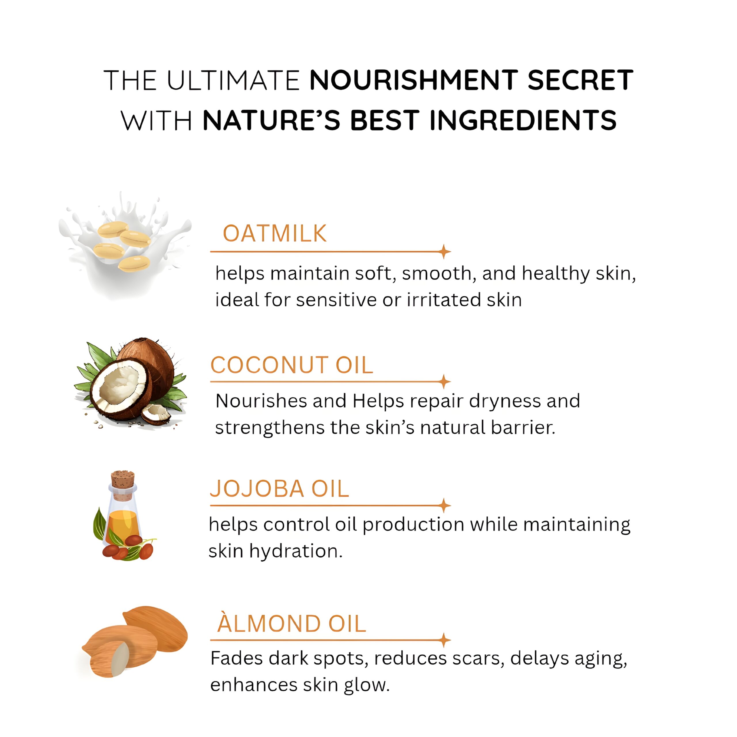 Coconut Oil, Palm Oil, Propylene Glycol, Sorbitol, Glycerin, Lauryl Glucoside, Myristic Acid(Coco Derived), Aqua, Cocamidopropyl Betaine, Castor Oil, Oat milk Extract, Jojoba Oil, Almond Oil, Natural Vitamin E, Sodium Hydroxide, Disodium EDTA, Fragrance Oil.
