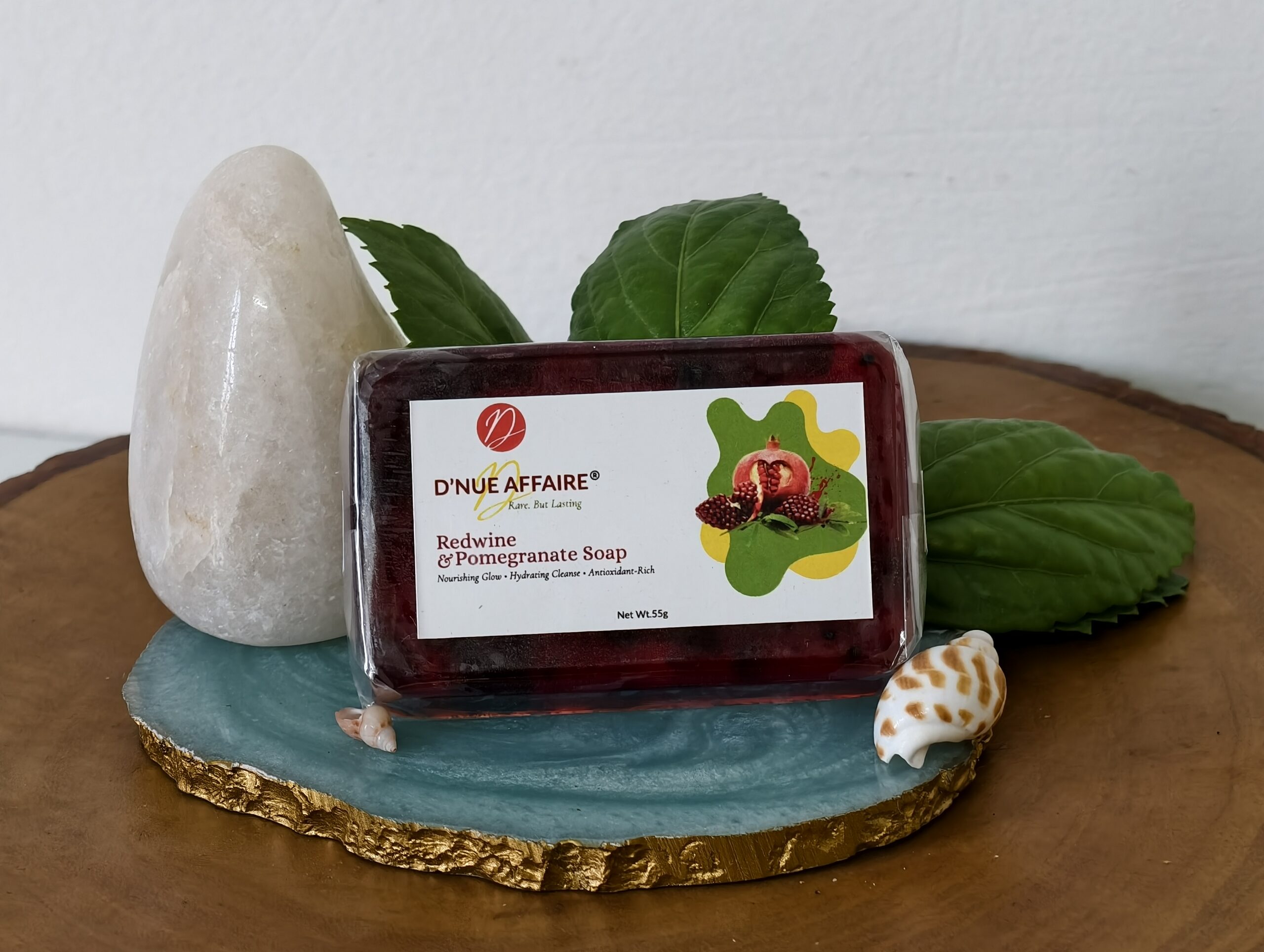 This handcrafted soap blends Red Wine, Pomegranate, and Rose for a gentle cleanse suitable for all skin types. Enriched with Coconut Oil, it removes impurities without drying the skin.